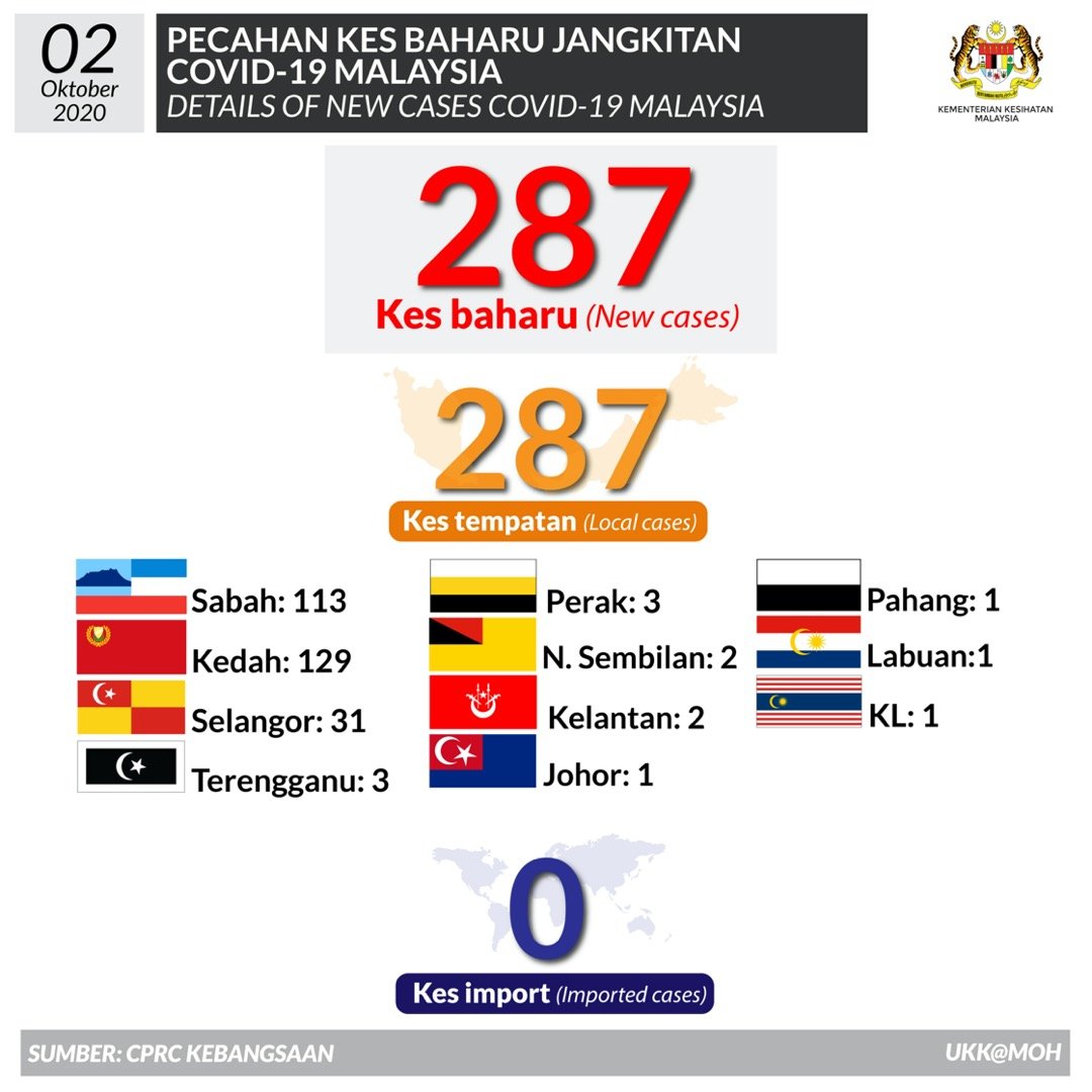 Statistik Pecahan Kes Baharu Jangkitan COVID-19 Malaysia 02/10/2020 Asrul Siaran Media 02 October 2020 Hits: 890 Rating: ( 0 Rating ) Please Rate Vote 1 Vote 2 Vote 3 Vote 4 Vote 5 Facebook Twitter Prev Next