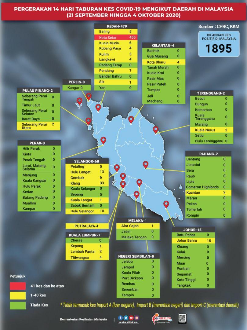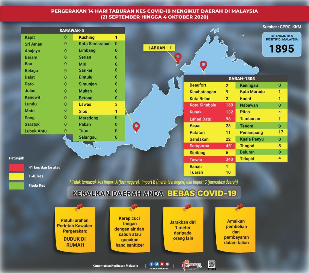 Pergerakan 14 Hari Taburan Kes COVID-19 Mengikut Daerah Di Malaysia 04/10/2020 Aiman Siaran Media 04 October 2020 Hits: 918 Rating: ( 0 Rating ) Please Rate Vote 1 Vote 2 Vote 3 Vote 4 Vote 5 Lihat / Muat Turun JPG 1 Lihat / Muat Turun JPG 2 Facebook Twitter Prev Next