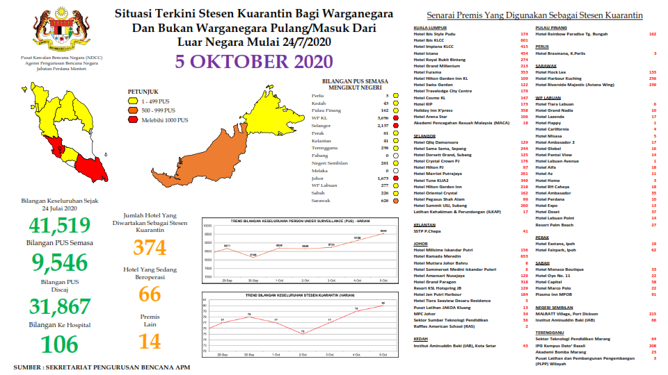 Situasi Terkini Stesen Kuarantin Bagi Warganegara Dan Bukan Warganegara Pulang/Masuk Dari Luar Negara 05/10/2020 Aiman Siaran Media 05 October 2020 Hits: 780 Rating: ( 0 Rating ) Please Rate Vote 1 Vote 2 Vote 3 Vote 4 Vote 5 Lihat / Muat Turun PDF Facebook Twitter Prev Next