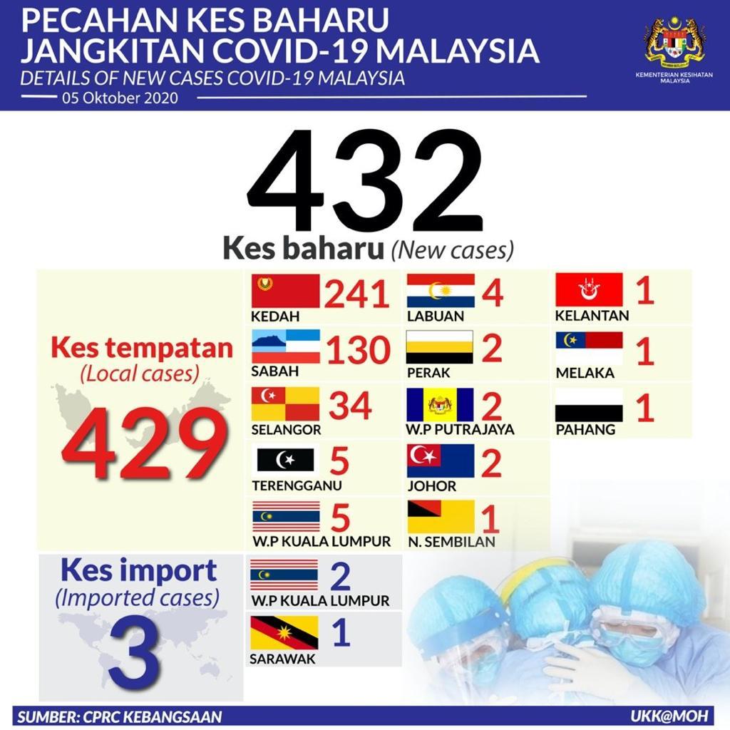 Statistik Pecahan Kes Baharu Jangkitan COVID-19 Malaysia 05/10/2020 Aiman Siaran Media 05 October 2020 Hits: 510 Rating: ( 0 Rating ) Please Rate Vote 1 Vote 2 Vote 3 Vote 4 Vote 5 Lihat / Muat Turun JPG Facebook Twitter Prev Next