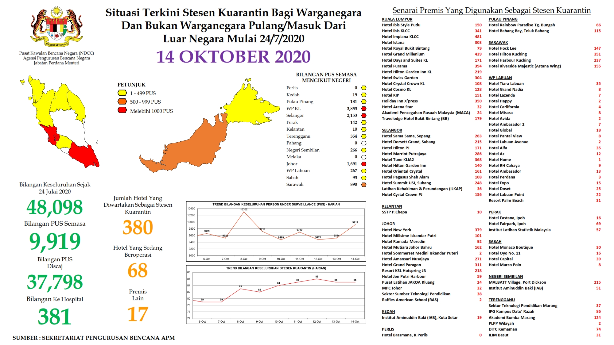 Situasi Terkini Stesen Kuarantin Bagi Warganegara Dan Bukan Warganegara Pulang/Masuk Dari Luar Negara 14/10/2020 Aiman Siaran Media 14 October 2020 Hits: 767 Rating: ( 0 Rating ) Please Rate Vote 1 Vote 2 Vote 3 Vote 4 Vote 5 Lihat / Muat Turun PDF Facebook Twitter Prev Next