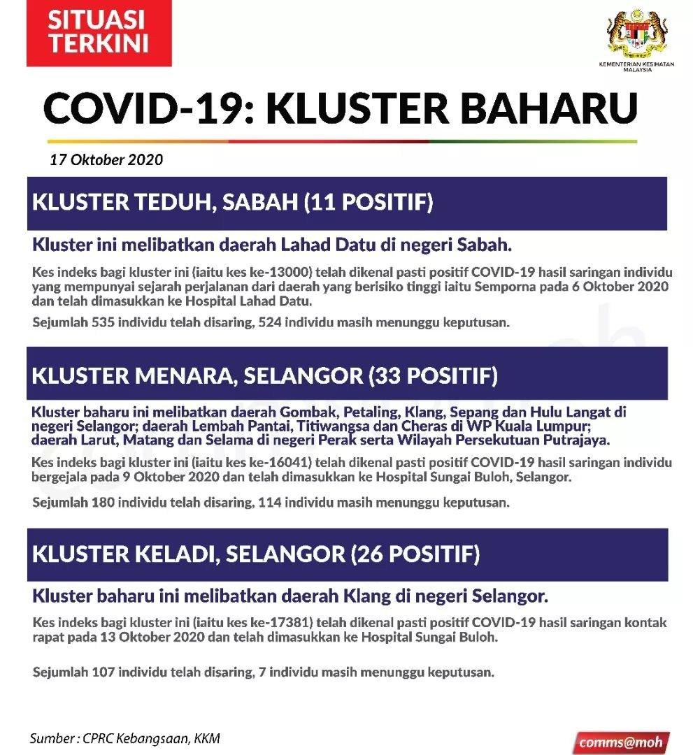 Situasi Terkini Kluster Baharu Covid-19 17/10/2020 Aiman Siaran Media 17 October 2020 Hits: 3293 Rating: ( 0 Rating ) Please Rate Vote 1 Vote 2 Vote 3 Vote 4 Vote 5 Lihat / Muat Turun JPG 1 Lihat / Muat Turun JPG 2 Facebook Twitter Prev Next