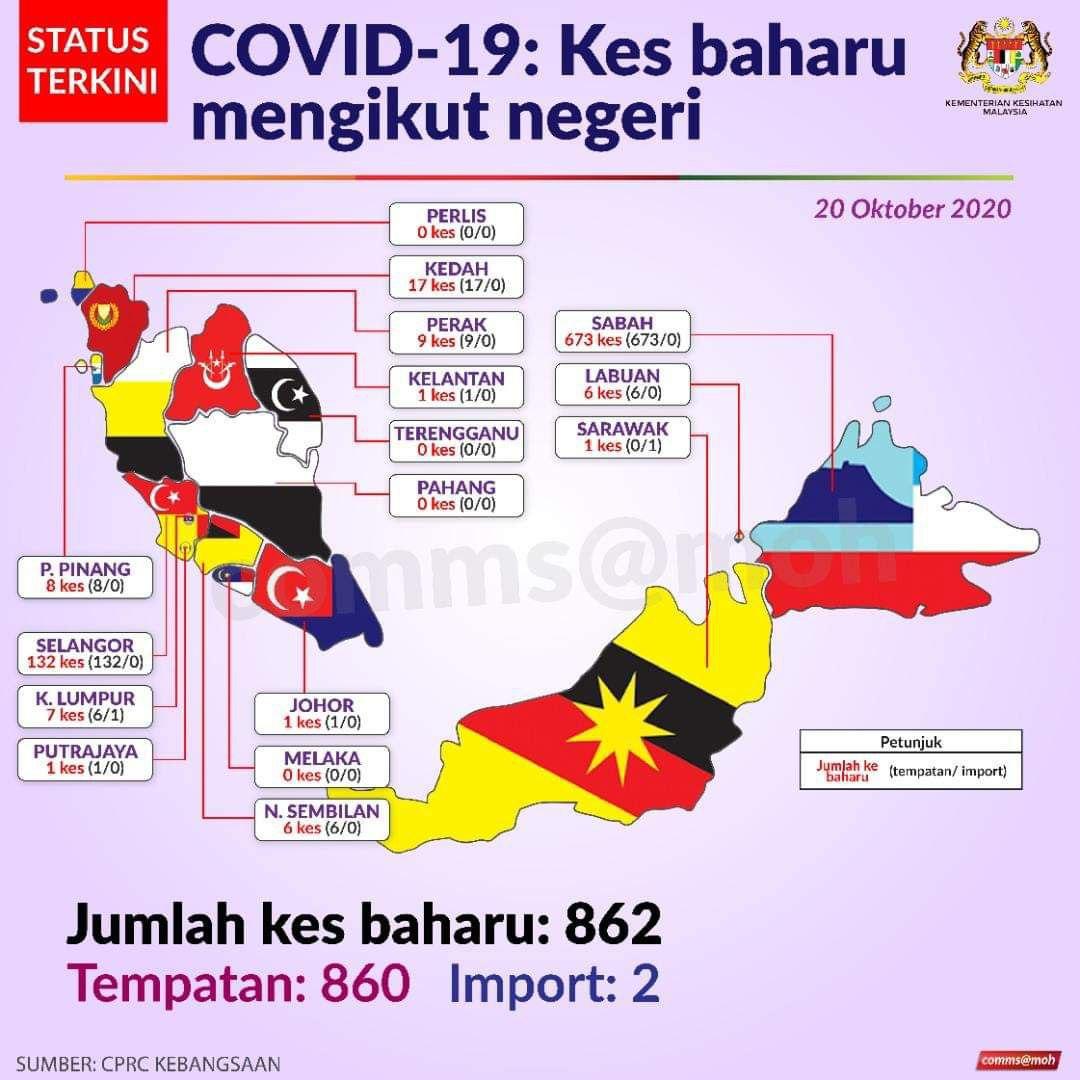 Status Terkini Kes Baharu Jangkitan COVID-19 Mengikut Negeri Di Malaysia 20/10/2020 Aiman Siaran Media 20 October 2020 Hits: 843 Rating: ( 0 Rating ) Please Rate Vote 1 Vote 2 Vote 3 Vote 4 Vote 5 Lihat / Muat Turun JPG Facebook Twitter Prev Next