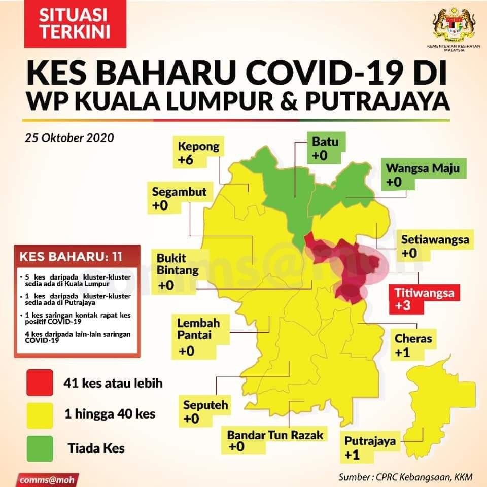 Situasi Terkini Kes Baharu COVID-19 Di WP Kuala Lumpur & Putrajaya 25/10/2020 Aiman Siaran Media 25 October 2020 Hits: 1052 Rating: ( 0 Rating ) Please Rate Vote 1 Vote 2 Vote 3 Vote 4 Vote 5 Lihat / Muat Turun JPG Facebook Twitter Prev Next