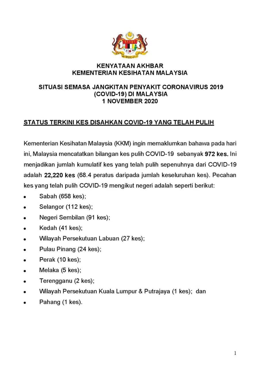 Kenyataan Akhbar Ketua Pengarah KKM 01/11/2020 0530 PM Aiman Siaran Media 01 November 2020 Hits: 616 Rating: ( 0 Rating ) Please Rate Vote 1 Vote 2 Vote 3 Vote 4 Vote 5 Facebook Twitter Prev Next