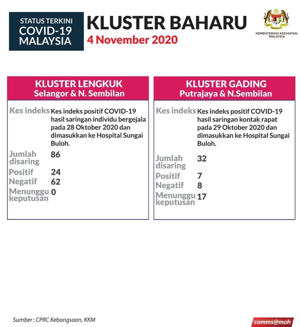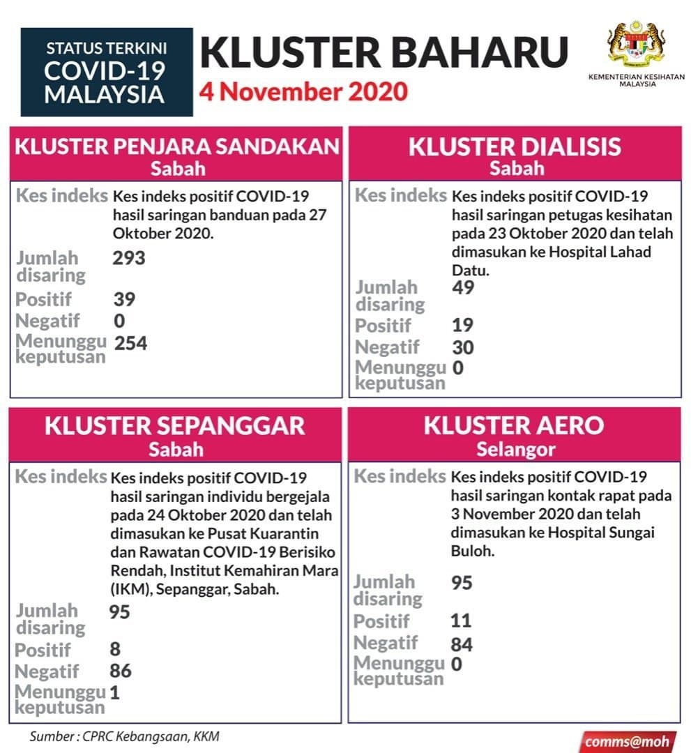 Situasi Terkini Kluster Baharu Covid-19 04/11/2020 Aiman Siaran Media 04 November 2020 Hits: 858 Rating: ( 0 Rating ) Please Rate Vote 1 Vote 2 Vote 3 Vote 4 Vote 5 Lihat / Muat Turun JPG 1 Lihat / Muat Turun JPG 2 Facebook Twitter Prev Next