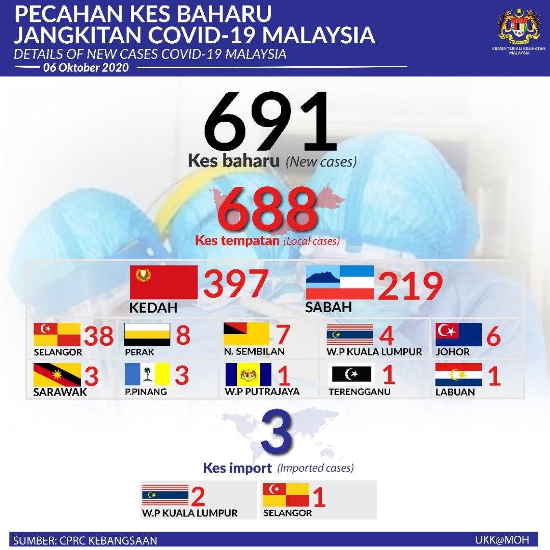 Statistik Pecahan Kes Baharu Jangkitan COVID-19 Malaysia 06/10/2020 Aiman Siaran Media 06 Oktober 2020 Jumlah paparan: 747 Rating: ( 0 Rating ) Sila beri kadar Undi 1 Undi 2 Undi 3 Undi 4 Undi 5 Lihat / Muat Turun JPG Facebook Twitter Seterusnya Seterusnya