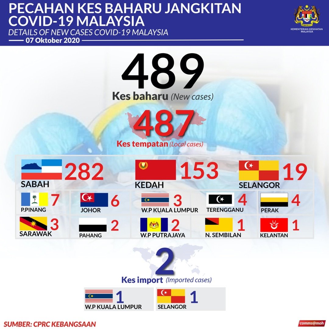 Statistik Pecahan Kes Baharu Jangkitan COVID-19 Malaysia 07/10/2020 Aiman Siaran Media 07 Oktober 2020 Jumlah paparan: 818 Rating: ( 0 Rating ) Sila beri kadar Undi 1 Undi 2 Undi 3 Undi 4 Undi 5 Lihat / Muat Turun JPG Facebook Twitter Seterusnya Seterusnya