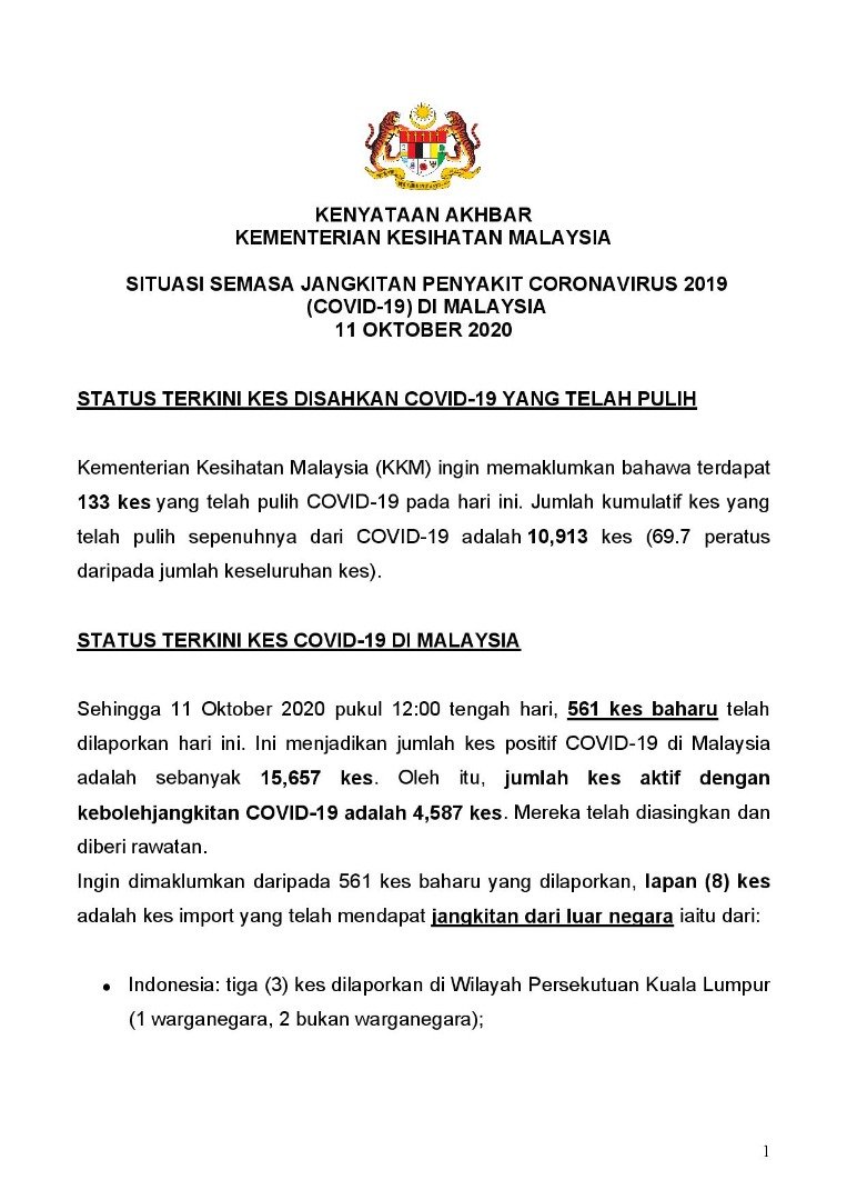 Kenyataan Akhbar KP KKM 11/10/2020 0500 PM Aiman Siaran Media 11 Oktober 2020 Jumlah paparan: 693 Rating: ( 0 Rating ) Sila beri kadar Undi 1 Undi 2 Undi 3 Undi 4 Undi 5 Facebook Twitter Seterusnya Seterusnya