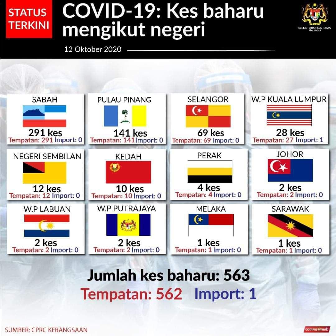 Status Terkini Kes Baharu Jangkitan COVID-19 Mengikut Negeri Di Malaysia 12/10/2020 Aiman Siaran Media 12 Oktober 2020 Jumlah paparan: 577 Rating: ( 0 Rating ) Sila beri kadar Undi 1 Undi 2 Undi 3 Undi 4 Undi 5 Lihat / Muat Turun JPG Facebook Twitter Seterusnya Seterusnya