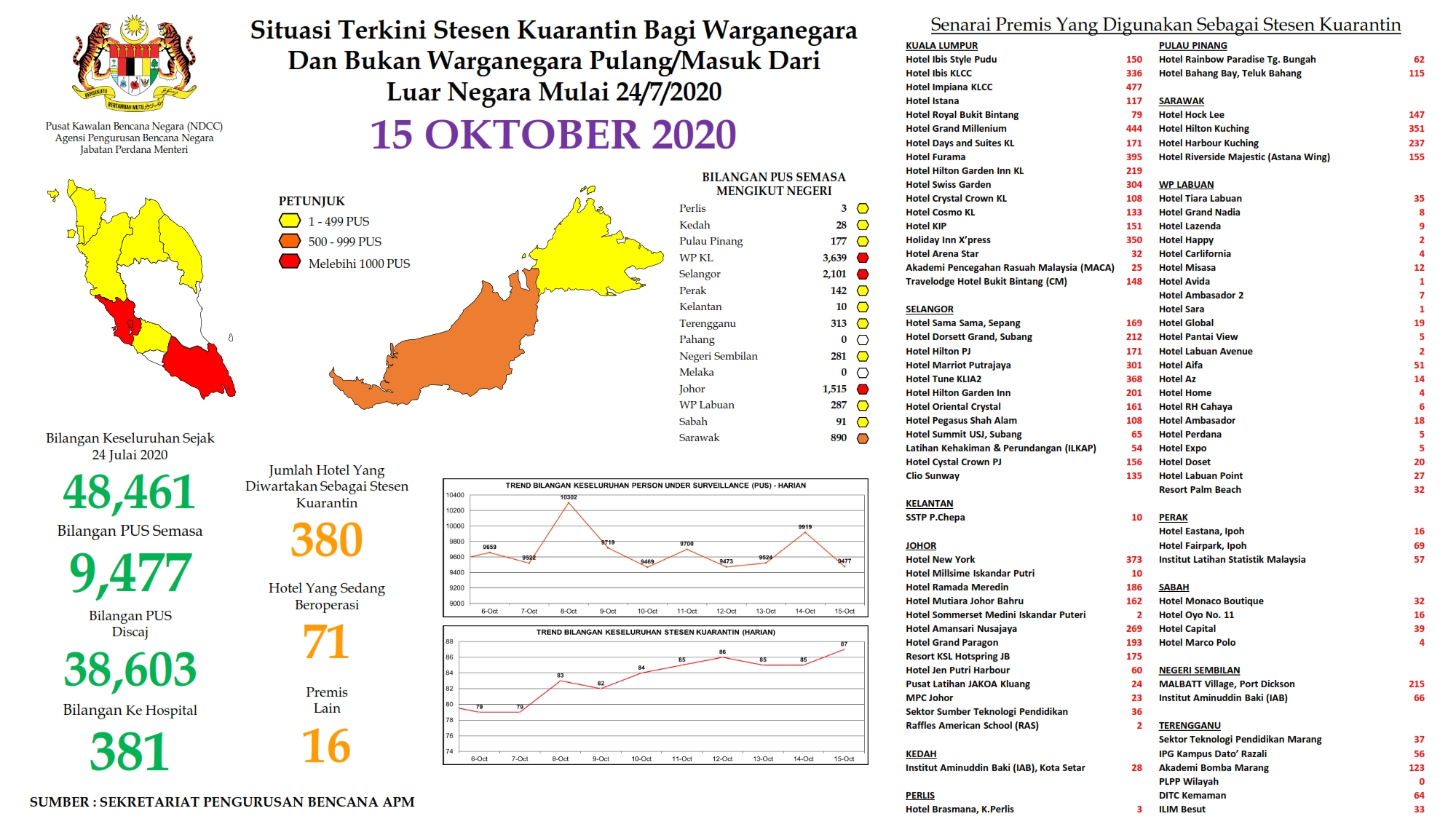 Situasi Terkini Stesen Kuarantin Bagi Warganegara Dan Bukan Warganegara Pulang/Masuk Dari Luar Negara 15/10/2020 Aiman Siaran Media 15 Oktober 2020 Jumlah paparan: 631 Rating: ( 0 Rating ) Sila beri kadar Undi 1 Undi 2 Undi 3 Undi 4 Undi 5 Lihat / Muat Turun PDF Facebook Twitter Seterusnya Seterusnya