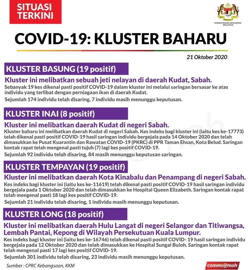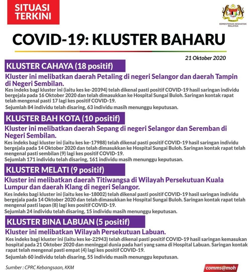 Situasi Terkini Kluster Baharu Covid-19 21/10/2020 Aiman Siaran Media 21 Oktober 2020 Jumlah paparan: 617 Rating: ( 0 Rating ) Sila beri kadar Undi 1 Undi 2 Undi 3 Undi 4 Undi 5 Lihat / Muat Turun JPG 1 Lihat / Muat Turun JPG 2 Facebook Twitter Seterusnya Seterusnya