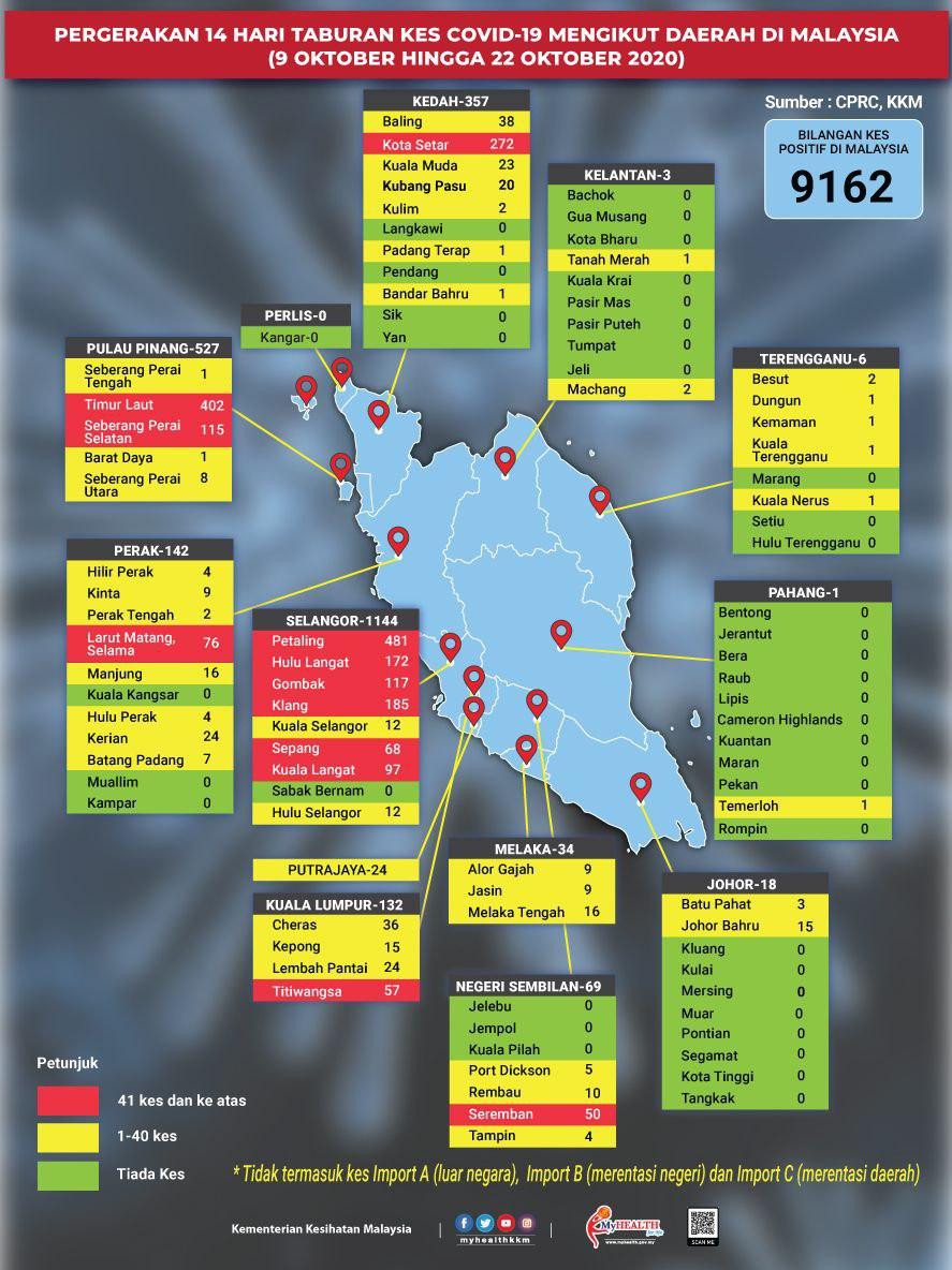 Pergerakan 14 Hari Taburan Kes COVID-19 Mengikut Daerah Di Malaysia 22/10/2020 Aiman Siaran Media 22 Oktober 2020 Jumlah paparan: 854 Rating: ( 0 Rating ) Sila beri kadar Undi 1 Undi 2 Undi 3 Undi 4 Undi 5 Lihat / Muat Turun JPG 1 Lihat / Muat Turun JPG 2 Facebook Twitter Seterusnya Seterusnya