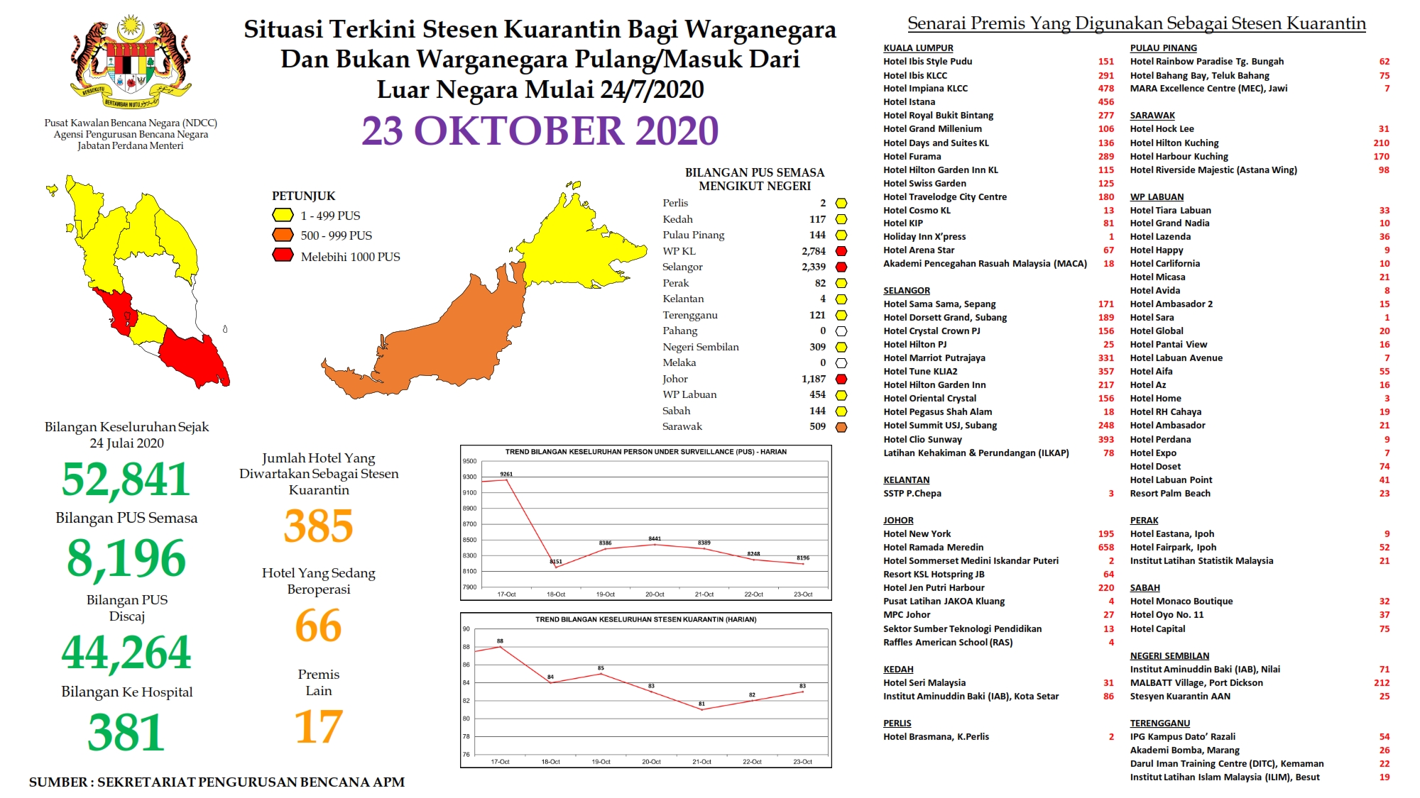 Situasi Terkini Stesen Kuarantin Bagi Warganegara Dan Bukan Warganegara Pulang/Masuk Dari Luar Negara 23/10/2020 Aiman Siaran Media 23 Oktober 2020 Jumlah paparan: 507 Rating: ( 0 Rating ) Sila beri kadar Undi 1 Undi 2 Undi 3 Undi 4 Undi 5 Lihat / Muat Turun PDF Facebook Twitter Seterusnya Seterusnya