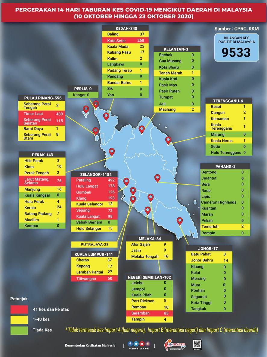 Pergerakan 14 Hari Taburan Kes COVID-19 Mengikut Daerah Di Malaysia 23/10/2020 Aiman Siaran Media 23 Oktober 2020 Jumlah paparan: 802 Rating: ( 0 Rating ) Sila beri kadar Undi 1 Undi 2 Undi 3 Undi 4 Undi 5 Lihat / Muat Turun JPG 1 Lihat / Muat Turun JPG 2 Facebook Twitter Seterusnya Seterusnya