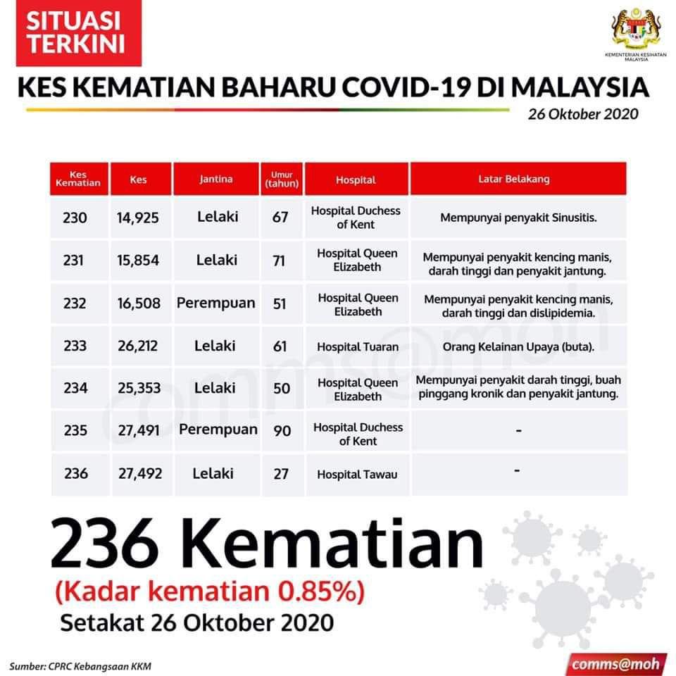 Kes Kematian Baharu COVID-19 Di Malaysia 26/10/2020 Aiman Siaran Media 26 Oktober 2020 Jumlah paparan: 502 Rating: ( 0 Rating ) Sila beri kadar Undi 1 Undi 2 Undi 3 Undi 4 Undi 5 Lihat / Muat Turun JPG Facebook Twitter Seterusnya Seterusnya