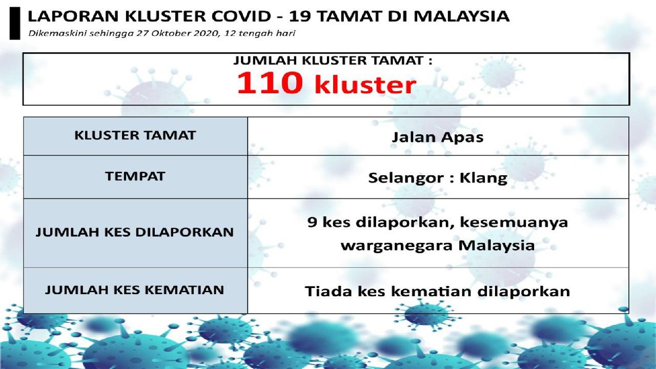 Laporan Kluster COVID-19 Tamat Di Malaysia 27/10/2020 1200 PM Aiman Siaran Media 27 Oktober 2020 Jumlah paparan: 912 Rating: ( 0 Rating ) Sila beri kadar Undi 1 Undi 2 Undi 3 Undi 4 Undi 5 Facebook Twitter Seterusnya Seterusnya