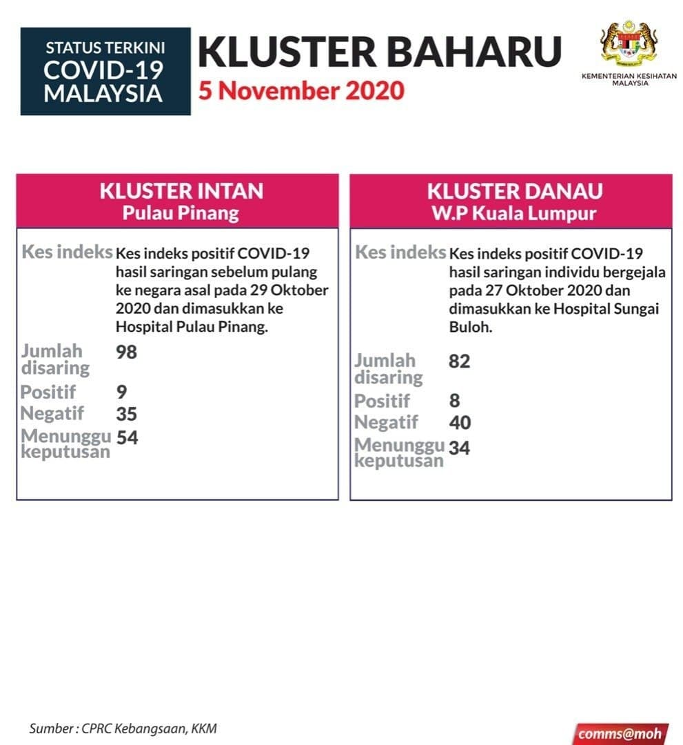 Situasi Terkini Kluster Baharu Covid-19 05/11/2020 Aiman Siaran Media 05 November 2020 Jumlah paparan: 605 Rating: ( 0 Rating ) Sila beri kadar Undi 1 Undi 2 Undi 3 Undi 4 Undi 5 Lihat / Muat Turun JPG 1 Lihat / Muat Turun JPG 2 Facebook Twitter Seterusnya Seterusnya
