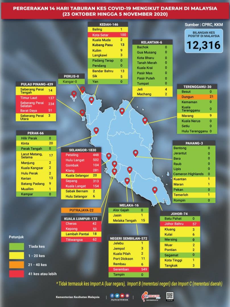 Pergerakan 14 Hari Taburan Kes COVID-19 Mengikut Daerah Di Malaysia 05/11/2020 Aiman Siaran Media 05 November 2020 Jumlah paparan: 658 Rating: ( 0 Rating ) Sila beri kadar Undi 1 Undi 2 Undi 3 Undi 4 Undi 5 Lihat / Muat Turun JPG 1 Lihat / Muat Turun JPG 2 Facebook Twitter Seterusnya Seterusnya