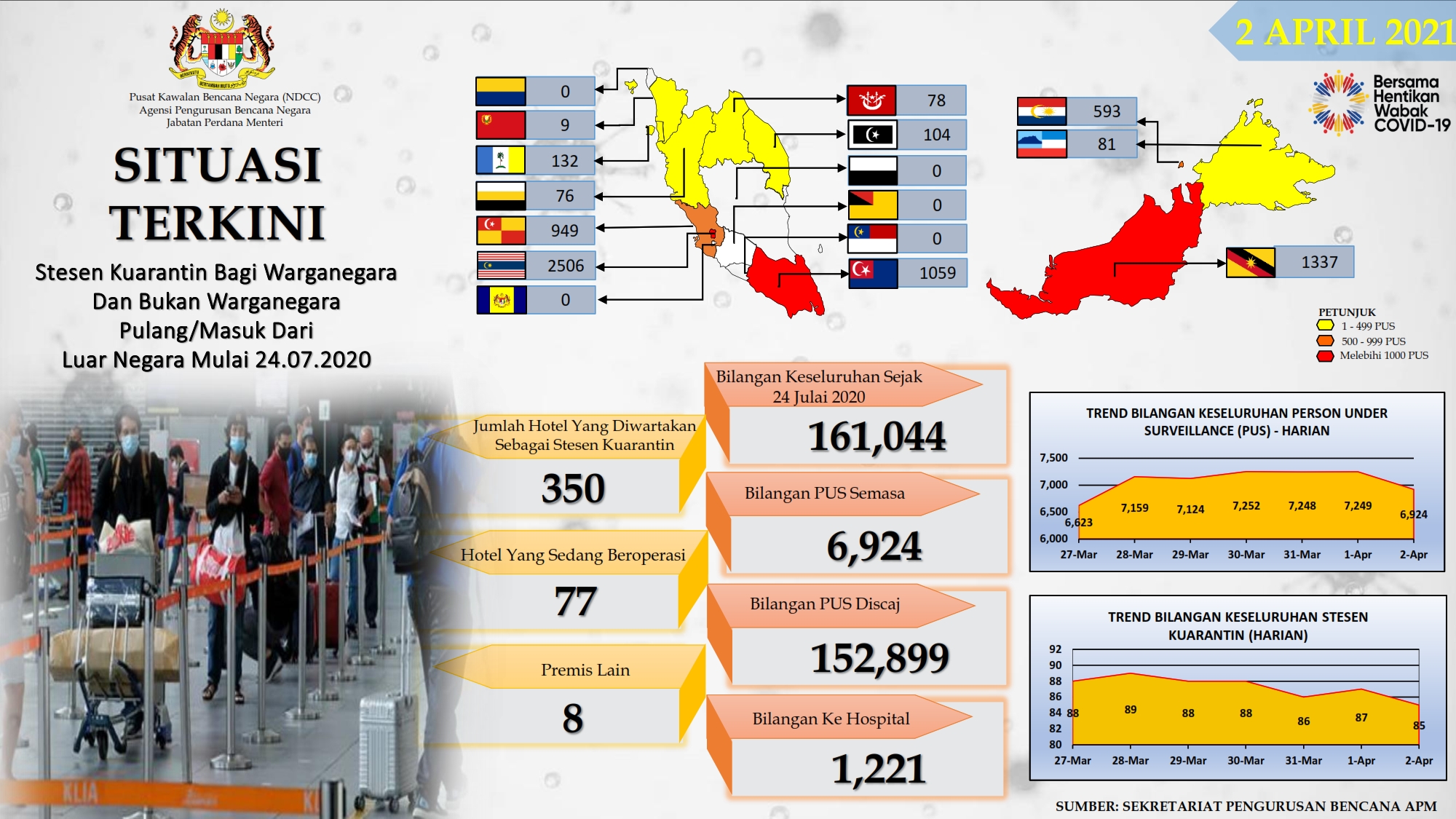 Situasi Terkini Stesen Kuarantin Bagi Warganegara Dan Bukan Warganegara Pulang/Masuk Dari Luar Negara 02/04/2021 Aiman Siaran Media 02 April 2021 Jumlah paparan: 599 Rating: ( 0 Rating ) Sila beri kadar Undi 1 Undi 2 Undi 3 Undi 4 Undi 5 Lihat / Muat Turun PDF Facebook Twitter Seterusnya Seterusnya