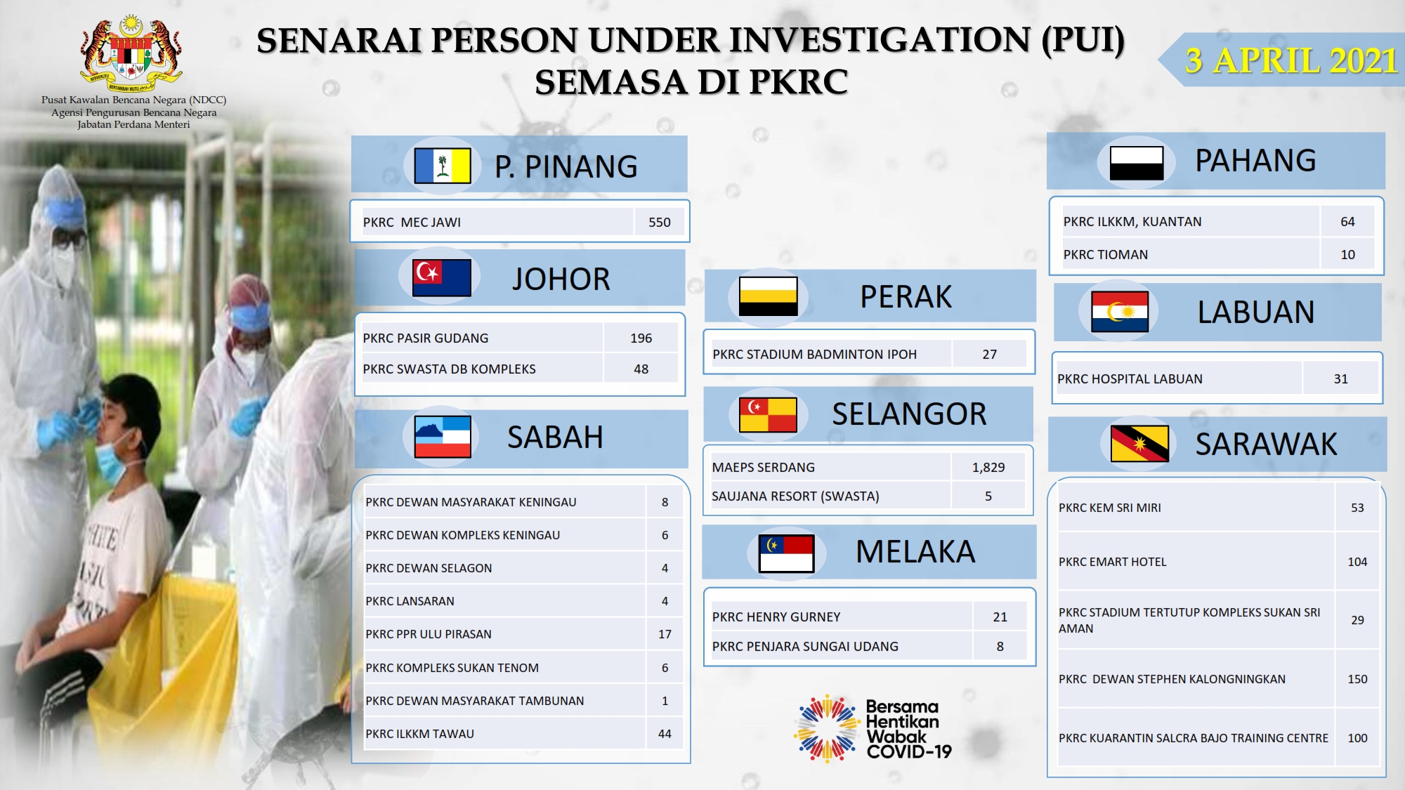 Situasi Terkini Di Pusat Kuarantin Dan Rawatan Covid-19 Berisiko Rendah 03/04/2021 Aiman Siaran Media 03 April 2021 Jumlah paparan: 790 Rating: ( 0 Rating ) Sila beri kadar Undi 1 Undi 2 Undi 3 Undi 4 Undi 5 Lihat / Muat Turun PDF Facebook Twitter Seterusnya Seterusnya