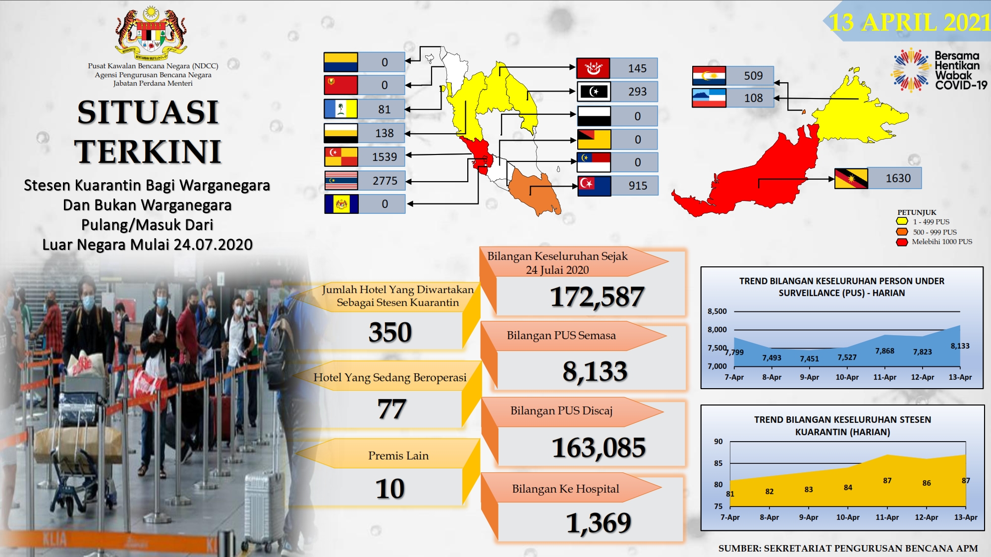 Situasi Terkini Stesen Kuarantin Bagi Warganegara Dan Bukan Warganegara Pulang/Masuk Dari Luar Negara 13/04/2021 Afrina Siaran Media 13 April 2021 Jumlah paparan: 871 Rating: ( 0 Rating ) Sila beri kadar Undi 1 Undi 2 Undi 3 Undi 4 Undi 5 Lihat / Muat Turun PDF Facebook Twitter Seterusnya Seterusnya