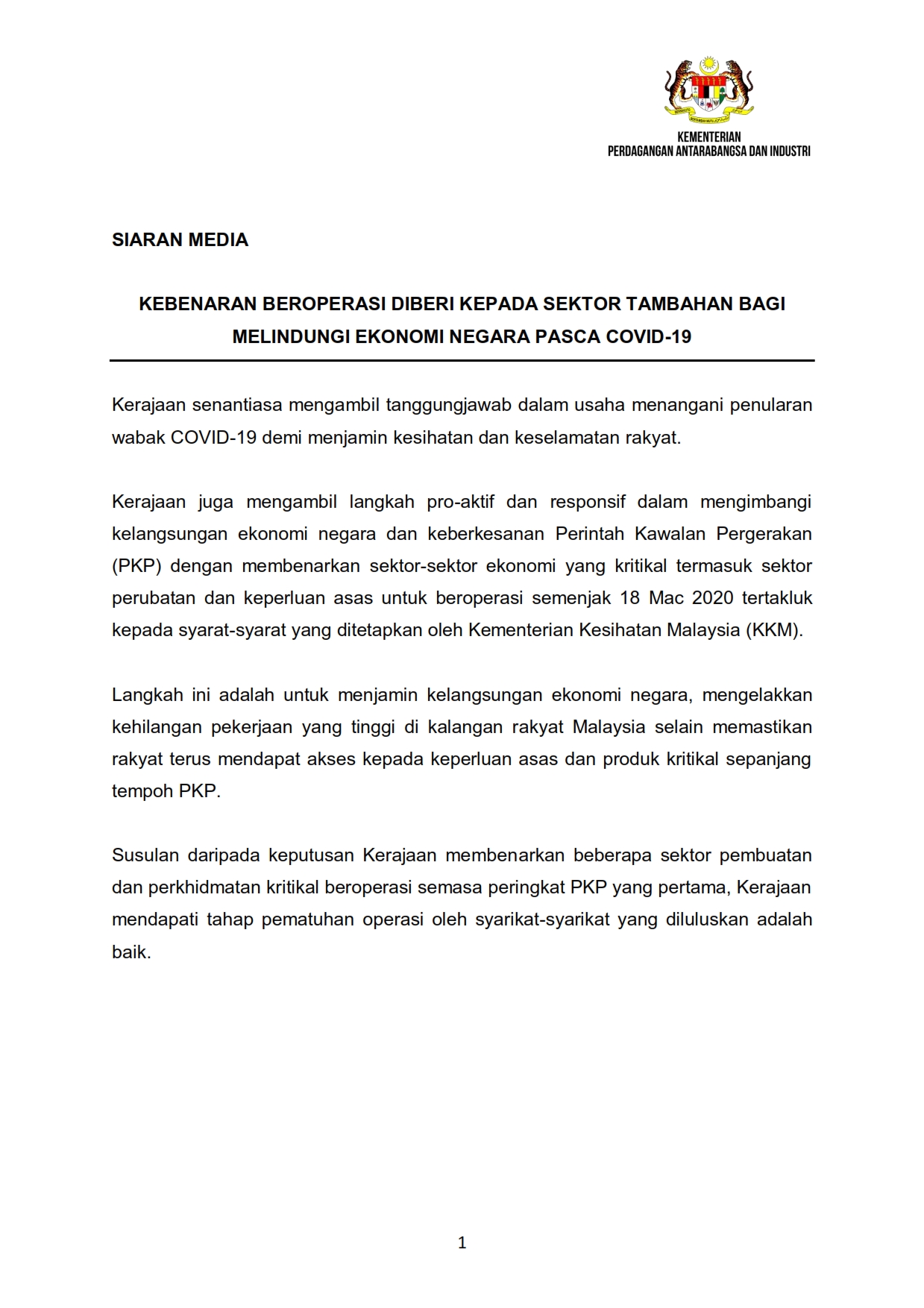 Siaran Media MITI 10/04/2020 Aiman Siaran Media 10 April 2020 Hits: 867 Rating: ( 0 Rating ) Please Rate Vote 1 Vote 2 Vote 3 Vote 4 Vote 5 Lihat / Muat Turun JPG Facebook Twitter Prev Next