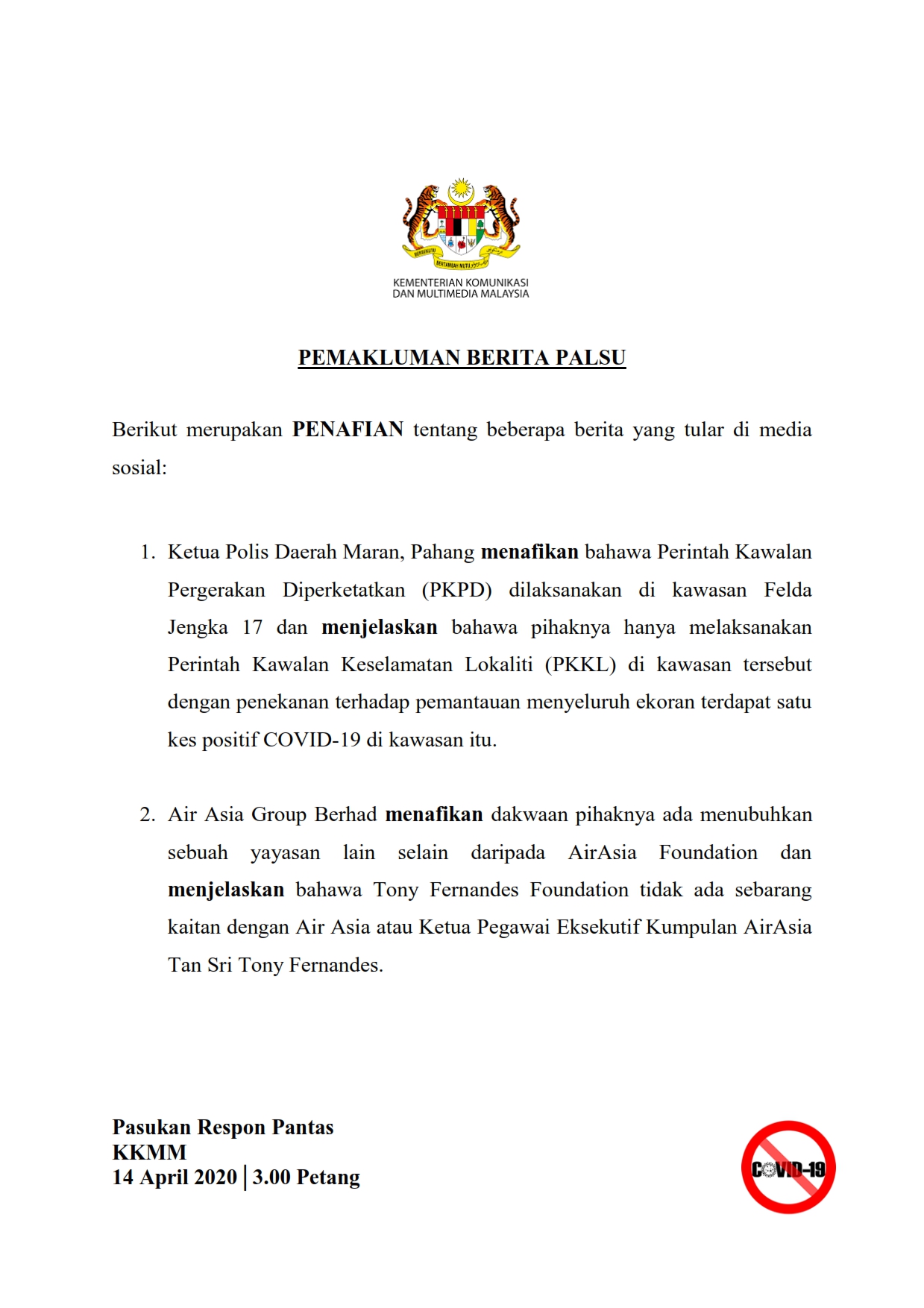 Pemakluman Berita Palsu SKMM 14/04/2020 0300 PM Asrul Siaran Media 14 April 2020 Hits: 964 Rating: ( 0 Rating ) Please Rate Vote 1 Vote 2 Vote 3 Vote 4 Vote 5 Lihat / Muat Turun PDF Facebook Twitter Prev Next