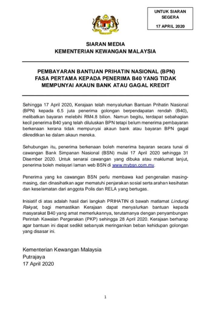 Kenyataan Media Kementerian Kewangan Malaysia (MOF) 17/04/2020 Aiman Siaran Media 17 April 2020 Hits: 939 Rating: ( 0 Rating ) Please Rate Vote 1 Vote 2 Vote 3 Vote 4 Vote 5 Lihat / Muat Turun JPG 1 Lihat / Muat Turun JPG 2 Facebook Twitter Prev Next