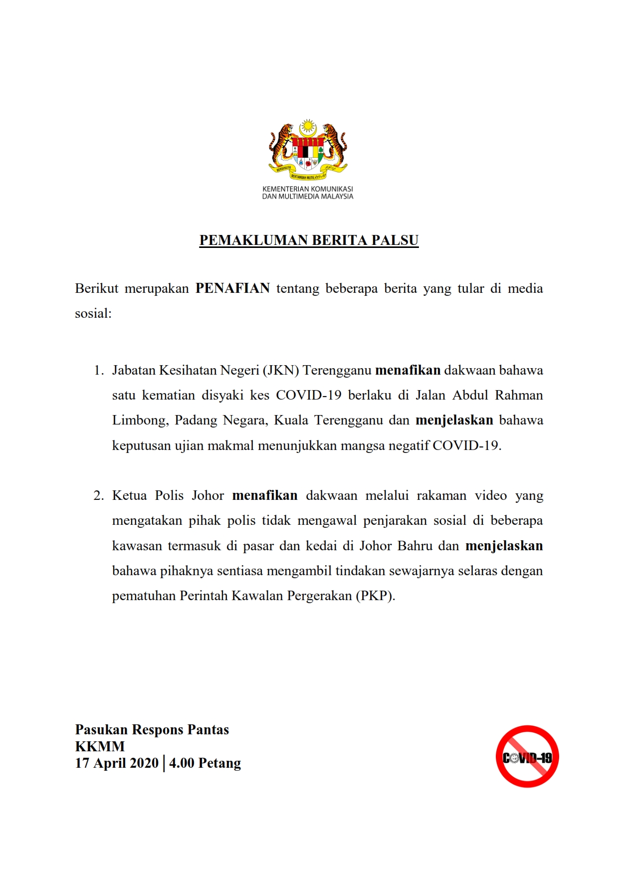 Pemakluman Berita Palsu SKMM 17/04/2020 0400 PM Aiman Siaran Media 17 April 2020 Hits: 1287 Rating: ( 0 Rating ) Please Rate Vote 1 Vote 2 Vote 3 Vote 4 Vote 5 Lihat / Muat Turun PDF Facebook Twitter Prev Next