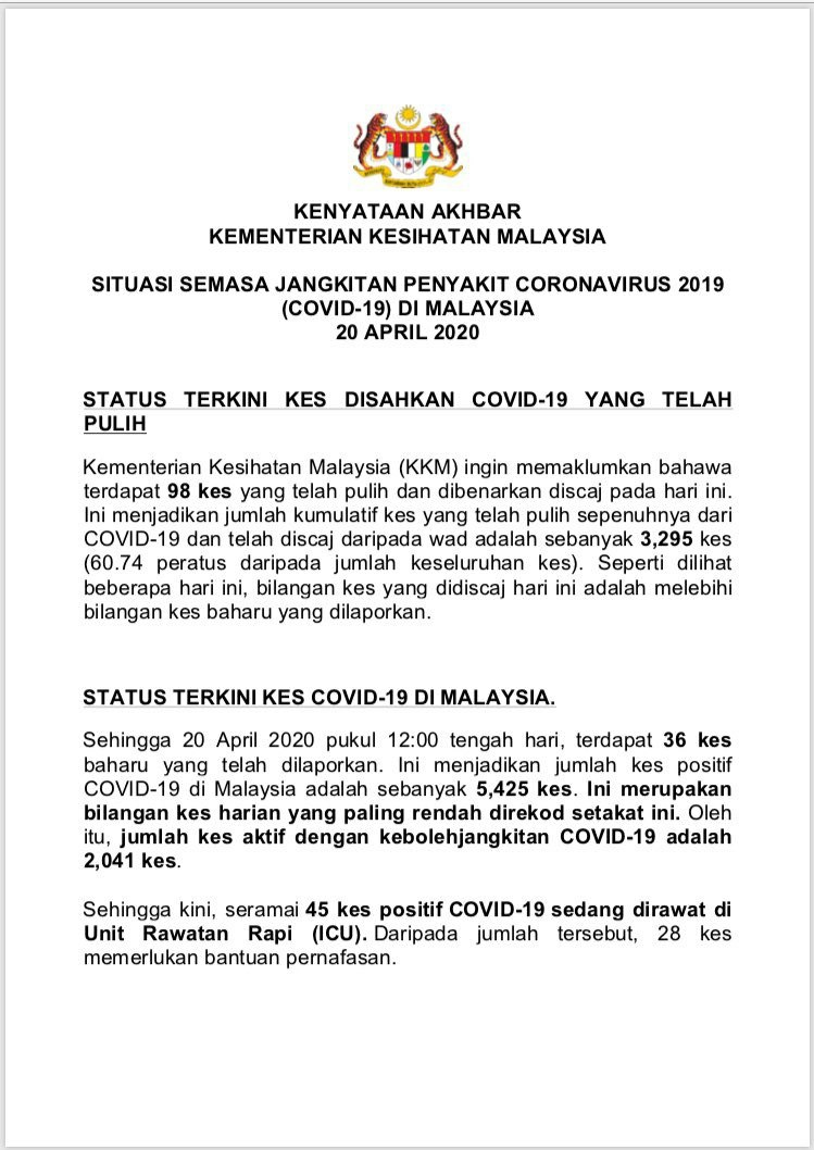 Kenyataan Media KP KKM 20/04/2020 0500 PM Asrul Siaran Media 20 April 2020 Hits: 989 Rating: ( 0 Rating ) Please Rate Vote 1 Vote 2 Vote 3 Vote 4 Vote 5 Facebook Twitter Prev Next