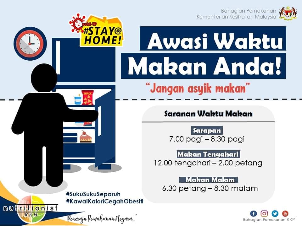 COVID-19 - Awasi Waktu Makan Anda Asrul Nasihat 20 April 2020 Hits: 1249 Rating: ( 0 Rating ) Please Rate Vote 1 Vote 2 Vote 3 Vote 4 Vote 5 Lihat / Muat Turun JPG Facebook Twitter Prev Next