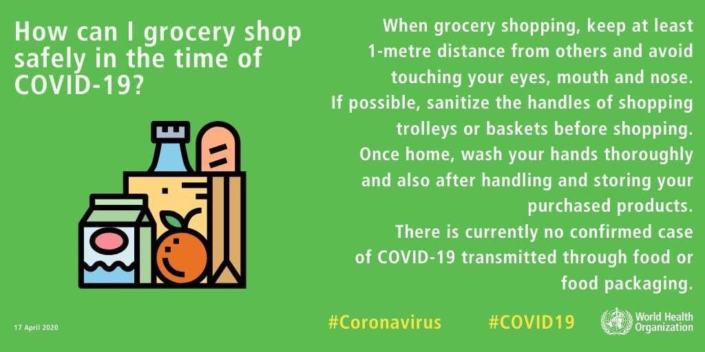 WHO - How can i grocery shop safely during COVID-19 ? Asrul Nasihat 21 April 2020 Hits: 702 Rating: ( 0 Rating ) Please Rate Vote 1 Vote 2 Vote 3 Vote 4 Vote 5 Lihat / Muat Turun JPG Facebook Twitter Prev Next