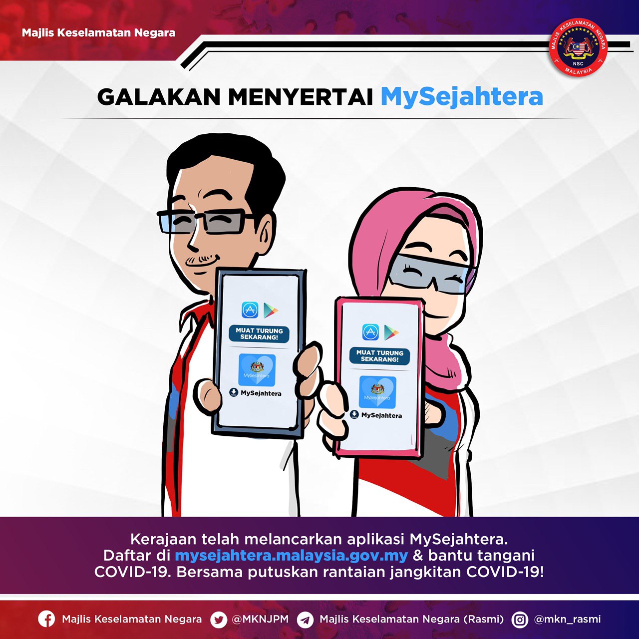 Galakan Menyertai MySejahtera Asrul Nasihat 24 April 2020 Hits: 1027 Rating: ( 0 Rating ) Please Rate Vote 1 Vote 2 Vote 3 Vote 4 Vote 5 Lihat / Muat Turun JPG Facebook Twitter Prev Next
