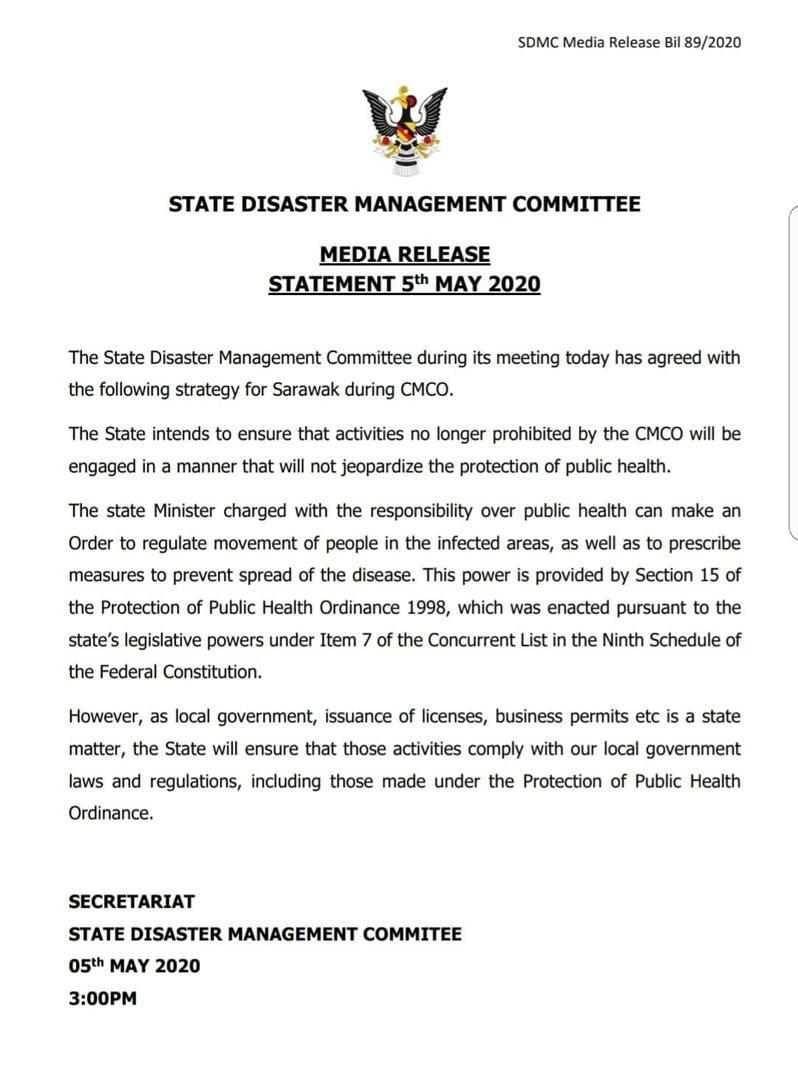 Kenyataan Media Jawatankuasa Pengurusan Bencana Negeri Sarawak 05/05/2020 0300 PM Asrul Siaran Media 05 May 2020 Hits: 1095 Rating: ( 0 Rating ) Please Rate Vote 1 Vote 2 Vote 3 Vote 4 Vote 5 Lihat / Muat Turun JPG Facebook Twitter Prev Next