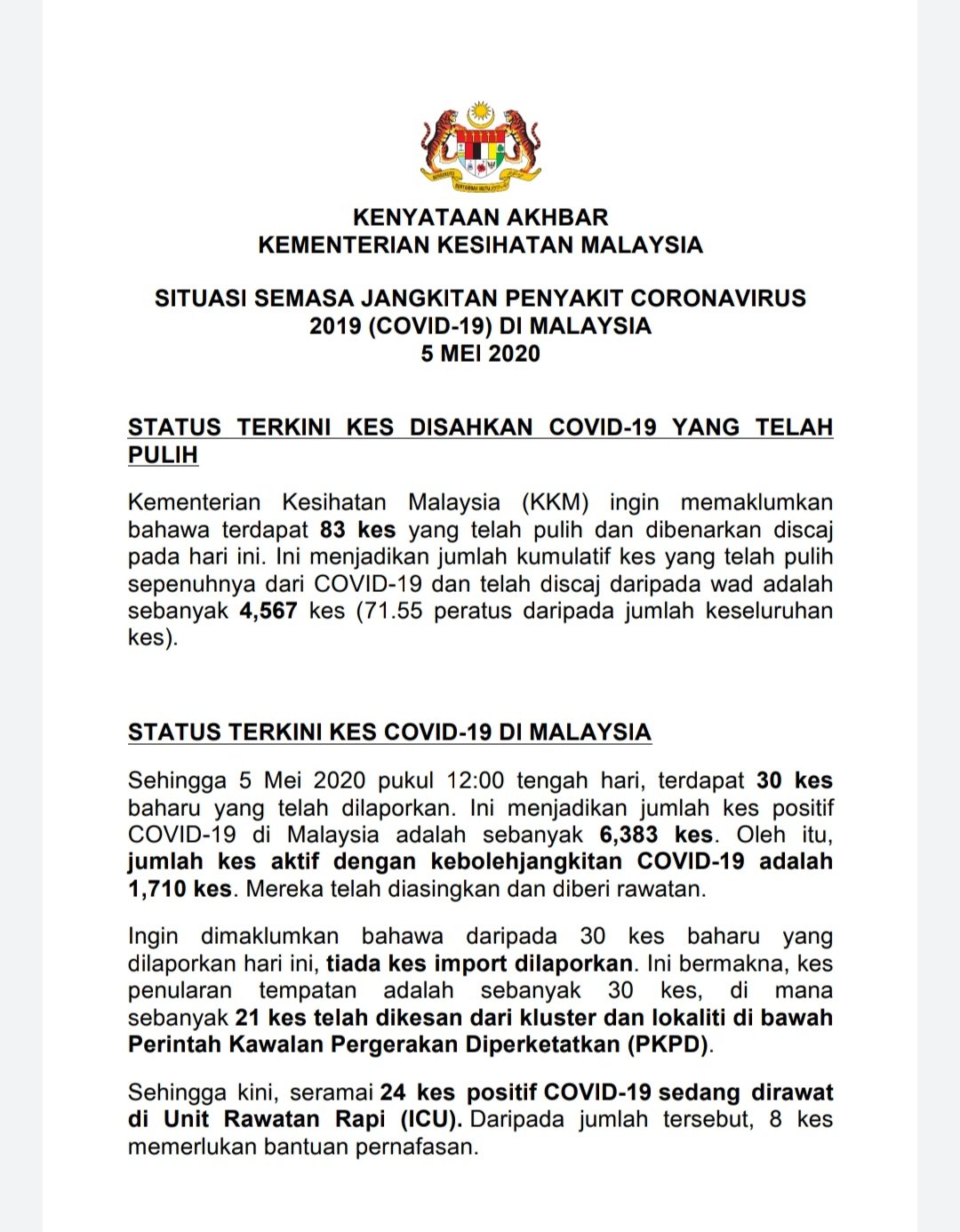 Kenyataan Media KP KKM 05/05/2020 1200 PM Asrul Siaran Media 05 May 2020 Hits: 1062 Rating: ( 0 Rating ) Please Rate Vote 1 Vote 2 Vote 3 Vote 4 Vote 5 Facebook Twitter Prev Next