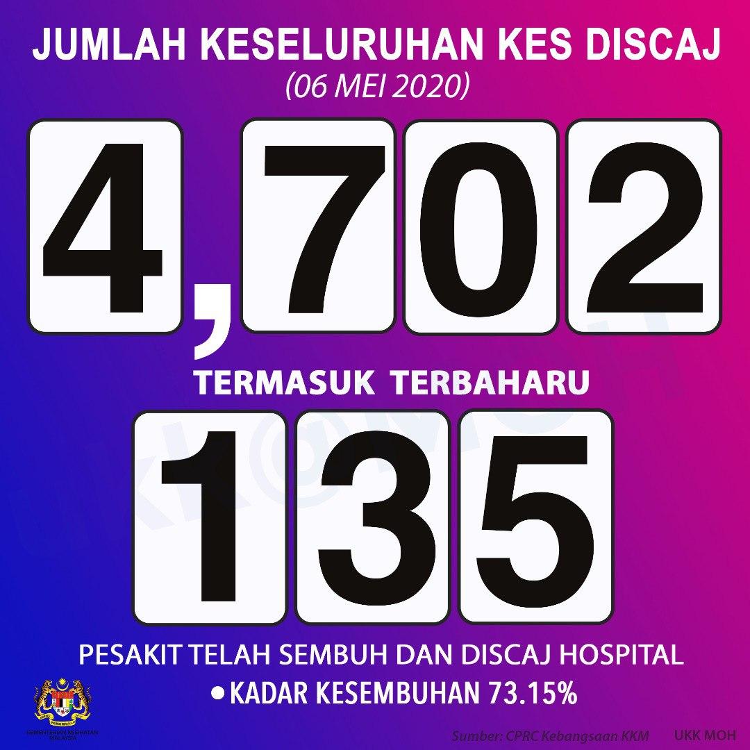 COVID-19 - Jumlah Keseluruhan Kes Discaj 06/05/2020 Asrul Siaran Media 06 May 2020 Hits: 860 Rating: ( 0 Rating ) Please Rate Vote 1 Vote 2 Vote 3 Vote 4 Vote 5 Lihat / Muat Turun JPG Facebook Twitter Prev Next