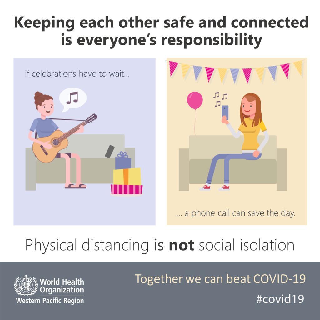 WHO - Physical Distancing Is Not Social Isolation Aiman Nasihat 11 May 2020 Hits: 3928 Rating: ( 0 Rating ) Please Rate Vote 1 Vote 2 Vote 3 Vote 4 Vote 5 Lihat / Muat Turun JPG Facebook Twitter Prev Next