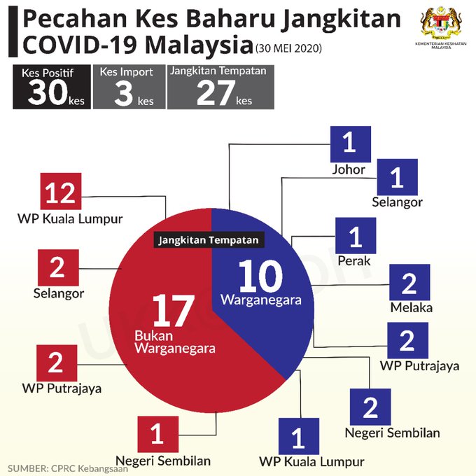 Statistik Pecahan Kes Baharu Jangkitan COVID-19 Malaysia 30/05/2020 Aiman Siaran Media 30 May 2020 Hits: 878 Rating: ( 0 Rating ) Please Rate Vote 1 Vote 2 Vote 3 Vote 4 Vote 5 Lihat / Muat Turun JPG 1 Lihat / Muat Turun JPG 2 Facebook Twitter Prev Next
