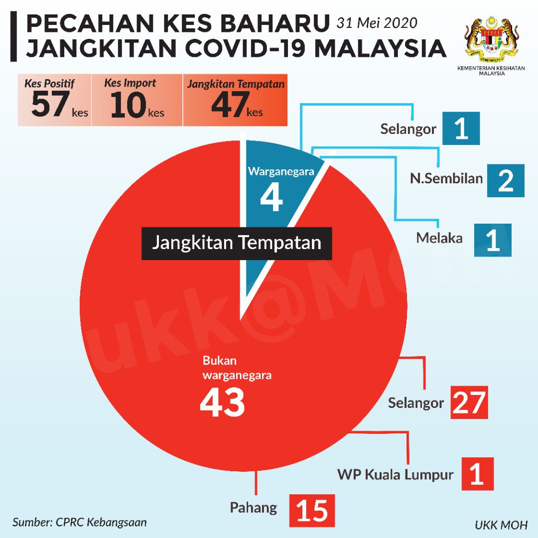 Statistik Pecahan Kes Baharu Jangkitan COVID-19 Malaysia 31/05/2020 Aiman Siaran Media 31 May 2020 Hits: 952 Rating: ( 0 Rating ) Please Rate Vote 1 Vote 2 Vote 3 Vote 4 Vote 5 Lihat / Muat Turun JPG 1 Lihat / Muat Turun JPG 2 Facebook Twitter Prev Next