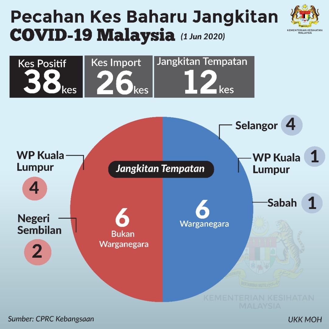 Statistik Pecahan Kes Baharu Jangkitan COVID-19 Malaysia 01/06/2020 Aiman Siaran Media 01 June 2020 Hits: 809 Rating: ( 0 Rating ) Please Rate Vote 1 Vote 2 Vote 3 Vote 4 Vote 5 Lihat / Muat Turun JPG 1 Lihat / Muat Turun JPG 2 Facebook Twitter Prev Next