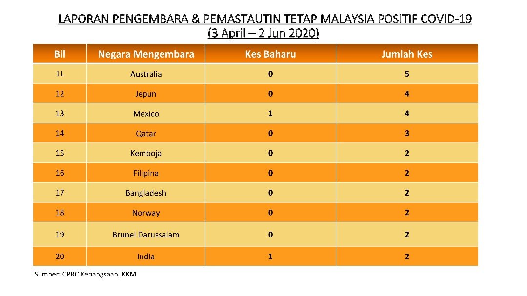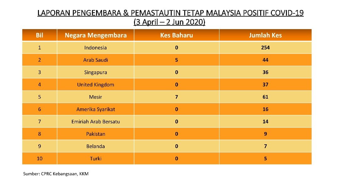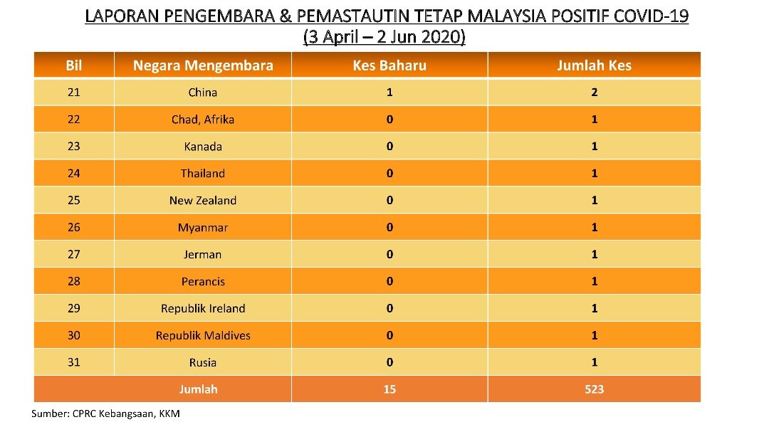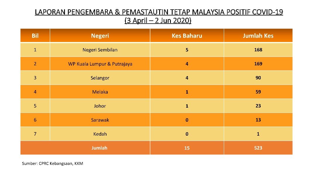 Laporan Pengembara & Pemastautin Tetap Malaysia Positif COVID-19 02/06/2020 Asrul Siaran Media 02 June 2020 Hits: 994 Rating: ( 0 Rating ) Please Rate Vote 1 Vote 2 Vote 3 Vote 4 Vote 5 Facebook Twitter Prev Next