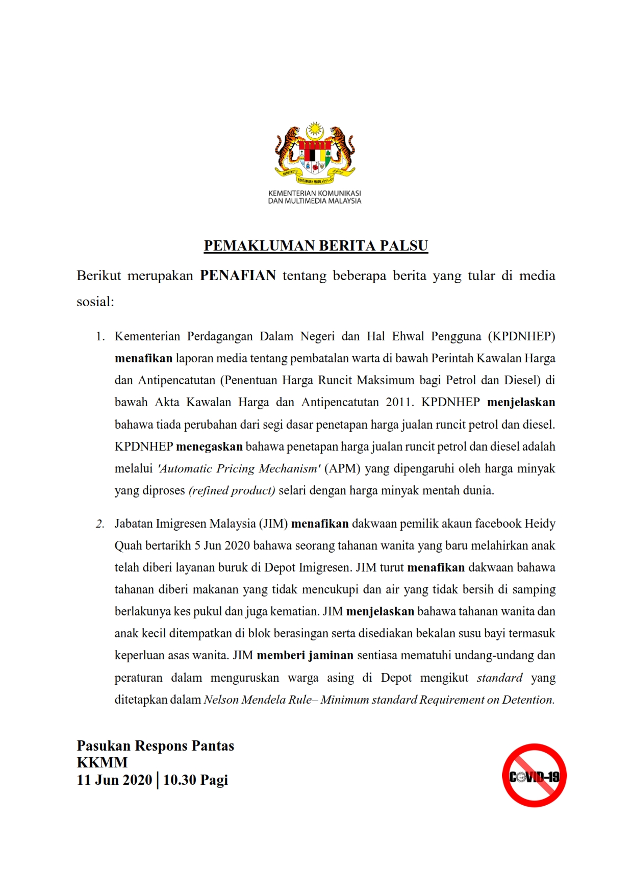 Pemakluman Berita Palsu SKMM 11/06/2020 1030 AM Aiman Siaran Media 11 June 2020 Hits: 620 Rating: ( 0 Rating ) Please Rate Vote 1 Vote 2 Vote 3 Vote 4 Vote 5 Lihat / Muat Turun PDF Facebook Twitter Prev Next