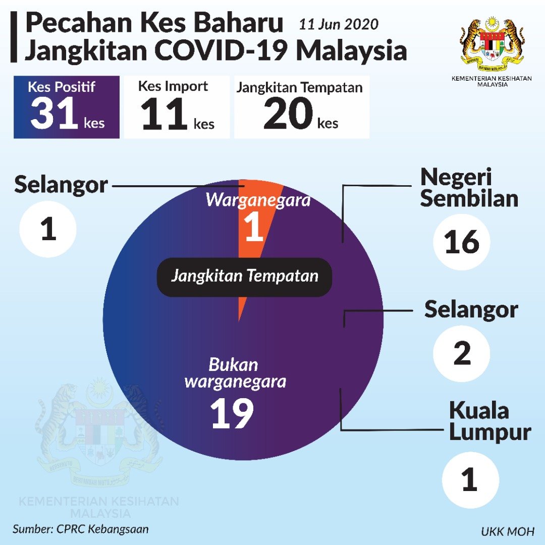 Statistik Pecahan Kes Baharu Jangkitan COVID-19 Malaysia 11/06/2020 Aiman Siaran Media 11 June 2020 Hits: 801 Rating: ( 0 Rating ) Please Rate Vote 1 Vote 2 Vote 3 Vote 4 Vote 5 Lihat / Muat Turun JPG Facebook Twitter Prev Next