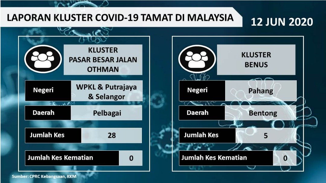Laporan Kluster COVID-19 Tamat Di Malaysia 12/06/2020 Aiman Siaran Media 12 June 2020 Hits: 808 Rating: ( 0 Rating ) Please Rate Vote 1 Vote 2 Vote 3 Vote 4 Vote 5 Lihat / Muat Turun JPG Facebook Twitter Prev Next