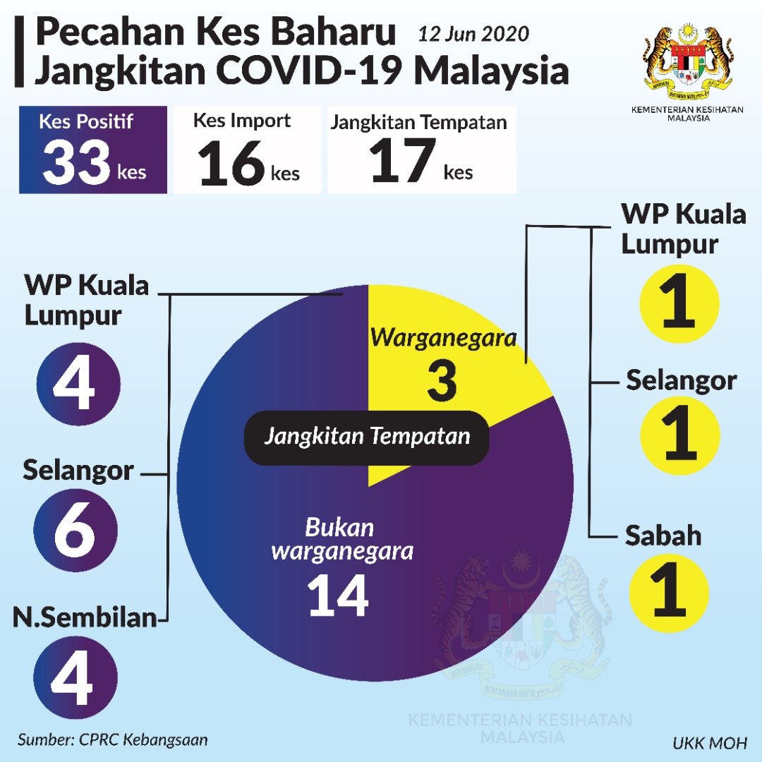 Statistik Pecahan Kes Baharu Jangkitan COVID-19 Malaysia 12/06/2020 Aiman Siaran Media 12 June 2020 Hits: 582 Rating: ( 0 Rating ) Please Rate Vote 1 Vote 2 Vote 3 Vote 4 Vote 5 Lihat / Muat Turun JPG Facebook Twitter Prev Next