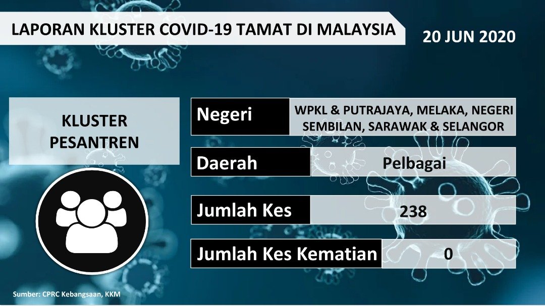 Laporan Kluster COVID-19 Tamat Di Malaysia 20/06/2020 Asrul Siaran Media 20 June 2020 Hits: 1057 Rating: ( 0 Rating ) Please Rate Vote 1 Vote 2 Vote 3 Vote 4 Vote 5 Facebook Twitter Prev Next