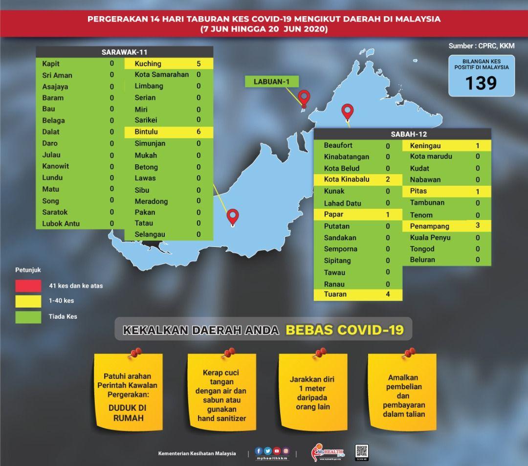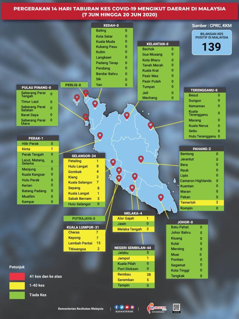 Pergerakan 14 Hari Taburan Kes COVID-19 Mengikut Daerah Di Malaysia 20/06/2020 Asrul Siaran Media 20 June 2020 Hits: 1112 Rating: ( 0 Rating ) Please Rate Vote 1 Vote 2 Vote 3 Vote 4 Vote 5 Facebook Twitter Prev Next