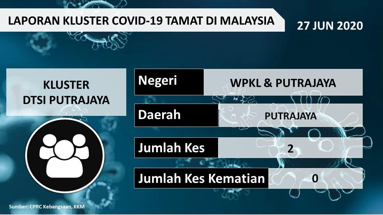Laporan Kluster COVID-19 Tamat Di Malaysia 27/06/2020 Aiman Siaran Media 27 June 2020 Hits: 758 Rating: ( 0 Rating ) Please Rate Vote 1 Vote 2 Vote 3 Vote 4 Vote 5 Facebook Twitter Prev Next