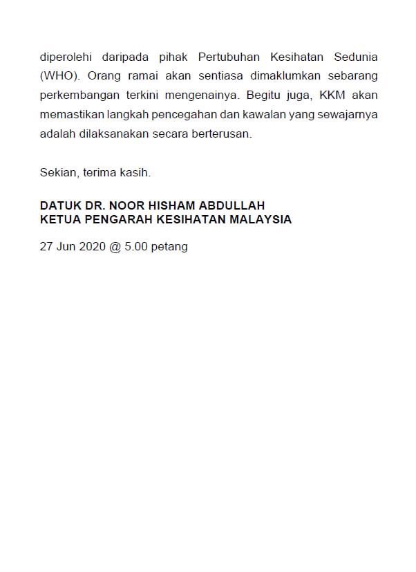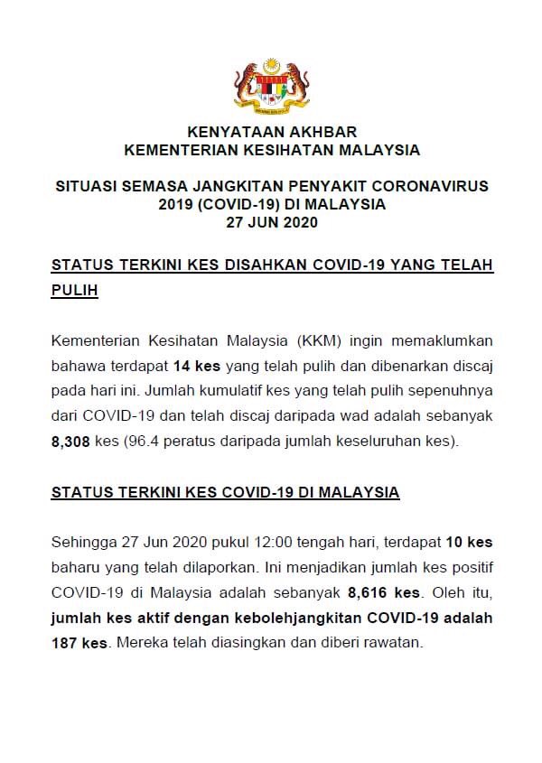Kenyataan Media KP KKM 27/06/2020 0500 PM Asrul Siaran Media 27 June 2020 Hits: 596 Rating: ( 0 Rating ) Please Rate Vote 1 Vote 2 Vote 3 Vote 4 Vote 5 Facebook Twitter Prev Next